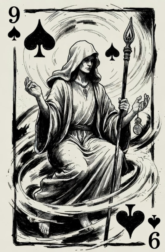 Numerologically, Nine is the final single digit, representing completion, culmination, and the end of a cycle. It carries the energy of karma, spiritual wisdom, and surrender. All nines in cartomancy relate to wishes: Hearts achieve through fulfillment, Diamonds through material gain, Clubs through effort.