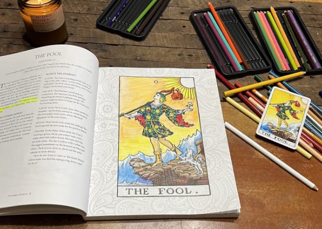 Physically engaging with each image makes the symbolism stick in ways that just memorizing never did. The act of choosing colors forces you to really sit with each element (why would the Fool’s bag be green versus red?) and before you know it, you’re internalizing meanings without the pressure of “studying.”