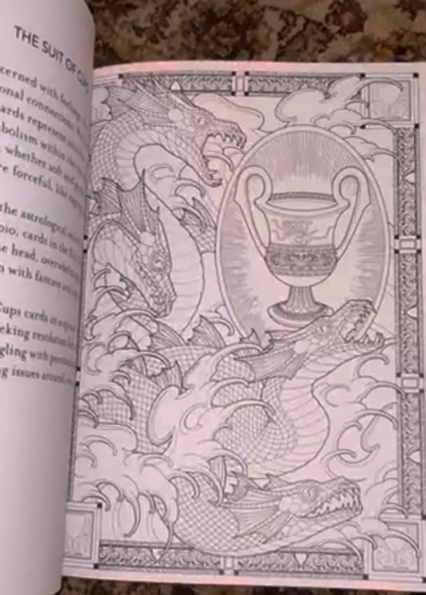 I found a great set for coloring the deck cards themselves. You don’t get a big book to color but you can do readings with the cards afterward. Might not be quite what you wanted but in some ways this is better.