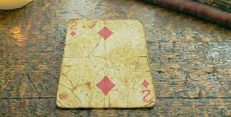 The Two of Diamonds has one of the most distinctive love meanings in cartomancy: a passionate love affair opposed by friends or family.
