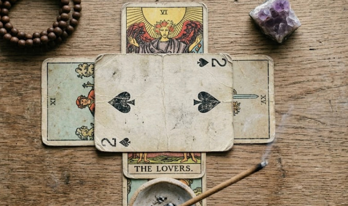 All twos in cartomancy deal with movement: Hearts move toward union, Diamonds toward exchange, Clubs toward collaboration, while Spades move toward separation unless decisive action intervenes.